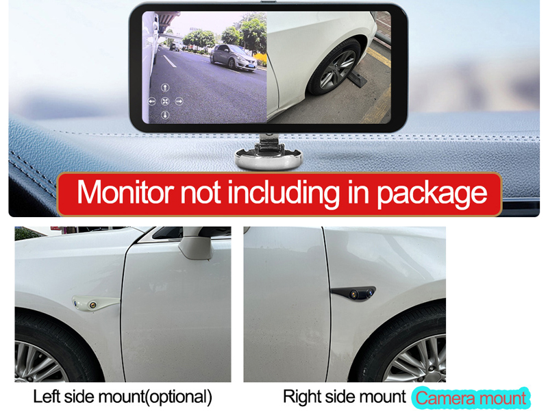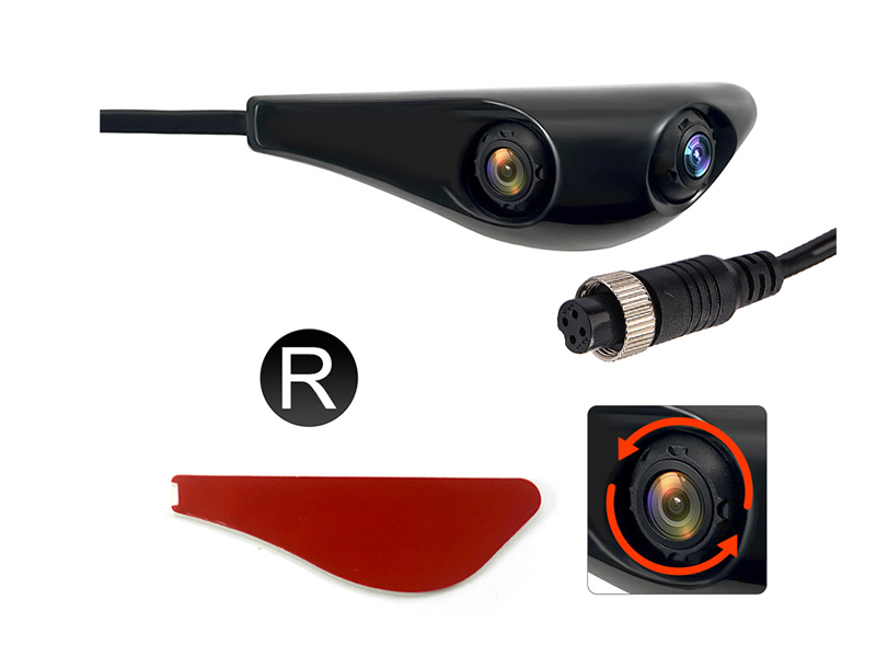 Dual lens View Camera provide front and side view of car . Users can clearly see the condition of the car body, for example, when driving normally, they can see cars coming from behind. When passing through some narrow roads, the display switches to the front camera image, and the driver can clearly see the image around the front wheels of the car
