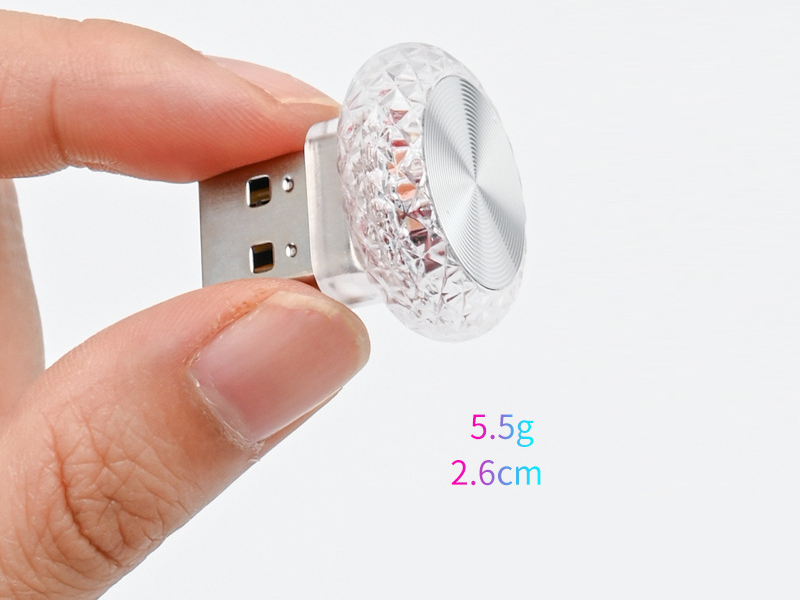 Plug-play,New 7-colors breathing type changing USB Car ambient light with transparent crystal cover