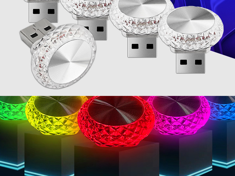New 7-colors breathing type changing USB Diamond Car ambient light